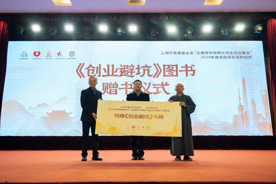 1月6日,上海市慈善基金会“玉佛禅寺觉群大学生创业基金”2024年度资助项目签约仪式在上海玉佛禅寺举行。